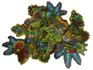 The artists were given the choice of creating one freeform piece interpreting the theme. The artists were not restricted to scrumbles and many of the pieces are wearable art and sculptural as well. None of the artists saw each other’s pieces until this online show.